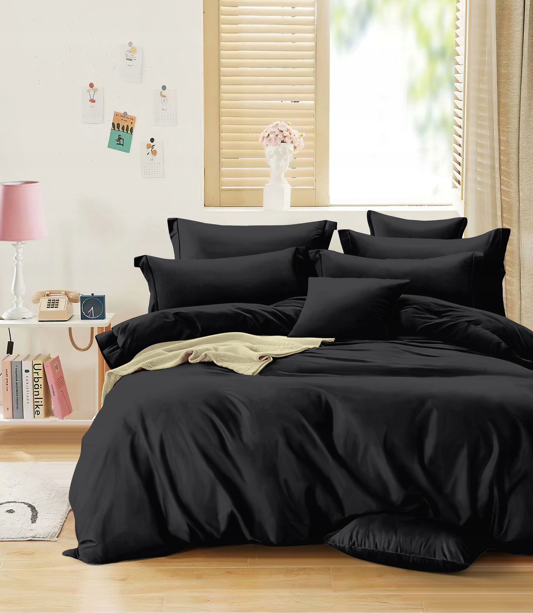 KOMPLET POŚCIELI 200x220 2x POSZEWKI 70x80 DWUSTRONNA GŁADKA MIĘKKA CZARNY