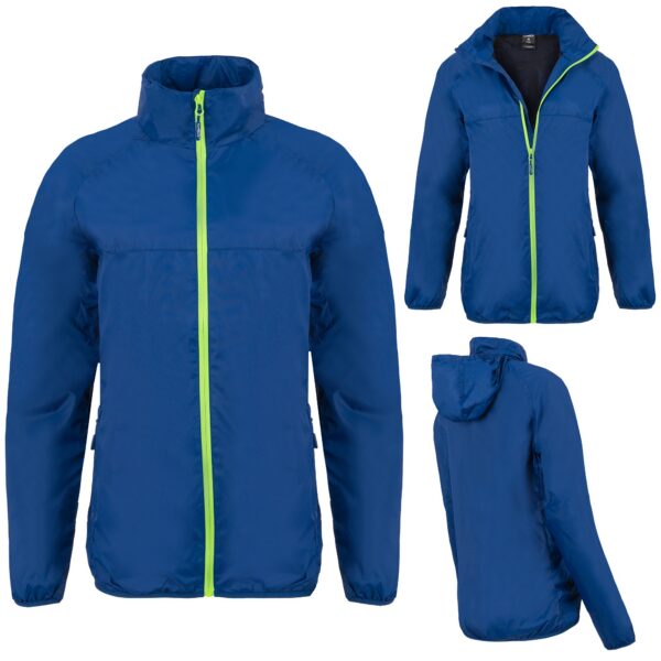 Kurtka damska wiatrówka granatowa Lambeste – lekka sportowa z kapturem, wodoodporna i wiatroodporna, półmatowa